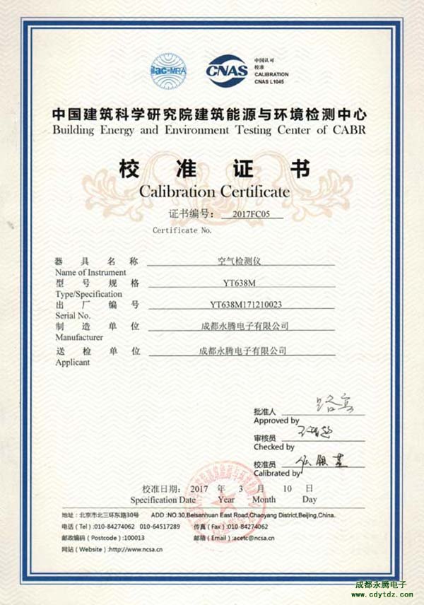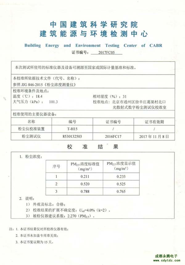 成都永騰電子PM2.5檢測儀檢驗(yàn)報告